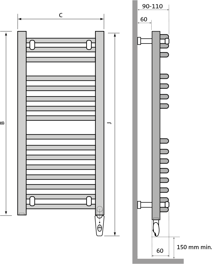 Jarl C CH je lijep radijator okruglih cijevi, izrađen u kromu.
