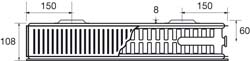 Robustan pločasti radijator sa skrivenim cijevima polaznog i povratnog voda te ugrađenim tijelom ventila. Parada ima ravnu prednju ploču te kombinira ravne bočne ploče i gornju rešetku izvedenu s lijepim završnim slojem boje.