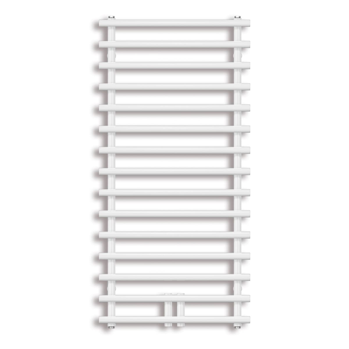 De Leros badkamerradiator heeft ronde symmetrische buizen met platte uiteinden die hem een zachte en harmonische uitstraling geven. Dankzij voldoende ruimte tussen de buizen biedt hij plaats aan meerdere handdoeken, en is hij bovendien gemakkelijk schoon te maken.