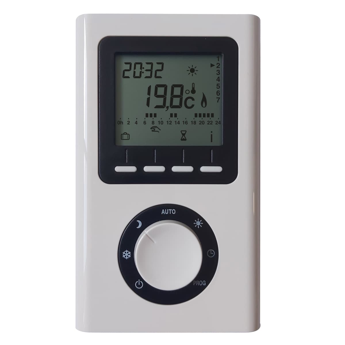 De Remote Control Figuresse vereenvoudigt het beheer van verwarmingssystemen met intelligente programmering die week-/dagschema's, aanpassingen op basis van aanwezigheid en energiebesparende modi omvat. Deze afstandsbediening kan worden gekoppeld aan compatibele verwarmingssystemen voor gecentraliseerde controle, visualisatie van energieverbruik en verbeterde veiligheidsfuncties zoals open raam detectie. Ideaal voor ruimtes die nauwkeurige temperatuurregeling en efficiënt energiebeheer vereisen