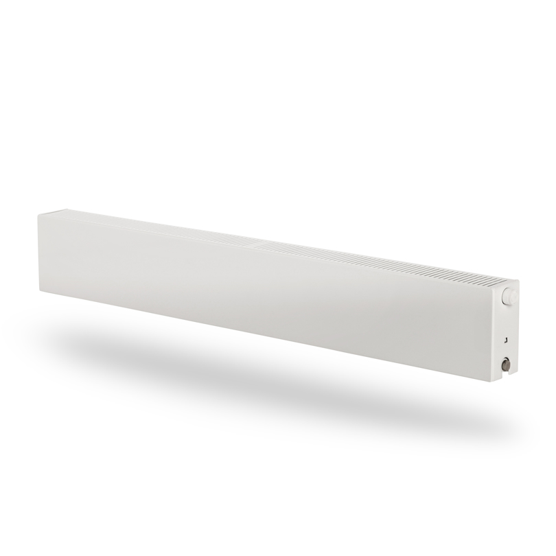 De Plint PD paneelradiator combineert een ruimtebesparende hoogte van 200 mm met vlakke voor- en achterpanelen om een perfecte match te creëren voor moderne interieurs met grote raampartijen. De geïntegreerde ventielbevestiging maakt een eenvoudige installatie mogelijk.